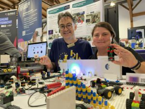 (Radebeul / Wiesbaden 28.09.2025) Das erfolgreiche Leonardo-Projekt „KLAB – das Klemmbausteinlabor“ wurde am Wochenende beim diesjährigen Science on Stage Festival in Radebeul (Sachsen) präsentiert. Am 2 Tagen stellten Sabrina Alfonso und Andreas Meier das von Schülerinnen und Schülern auf Basis von Klemmbausteinen entwickelte Experimentiermaterial an ihrem Messestand vor. Zahlreiche Besucher, zu denen u. a. der sächsische Kultusminister Conrad Clemens zählte, zeigten sich begeistert von dem einfach umzusetzenden Konzept. „Genial!“ und „Wieso ist uns das bisher nicht eingefallen?“, zählten zu den häufigsten Kommentaren der Standbesucher. Doch was denkt die Jury?
