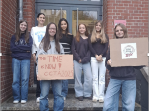 Am Donnerstag, den 4. Dezember 2025 führten im Rahmen der internationalen Veranstaltung von Climate Change Theatre Action 2025 sieben Schülerinnen des WPU-Kurses Theater der Klassen 9 drei kurze Theaterstücke in der aktuellen Ausstellung des Nassauischen Kunstvereins Wiesbaden auf.