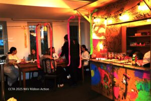 Im Anschluss an die Aufführung der CCTA 2025-Stücke fand eine CCTA-Ribbon-Action. Die Besucher der Ausstellung und der Theateraufführung sind eingeladen auf Bändern festzuhalten, was sie nicht an die Klimakrise verlieren möchten.