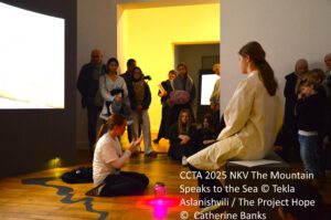 Im Anschluss an die Aufführung der CCTA 2025-Stücke fand eine CCTA-Ribbon-Action. Die Besucher der Ausstellung und der Theateraufführung sind eingeladen auf Bändern festzuhalten, was sie nicht an die Klimakrise verlieren möchten.