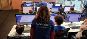 Bereits zum zweiten Mal durften wir dort an einem Programmier-Training (Lego Mindstorms Roboter, Python) und einem Präsentations- und Team-Coaching teilnehmen. Letzteres ist besonders interessant, da fast alle Wettbewerbe im MINT-Bereich auch mit einer Einzel- oder Team-Präsentation verbunden sind. Natürlich durften wir auch eine Office-Tour durch die drei Bloomberg-Etagen in Frankfurt machen. Es war für uns alle ein sehr beeindruckender Tag!